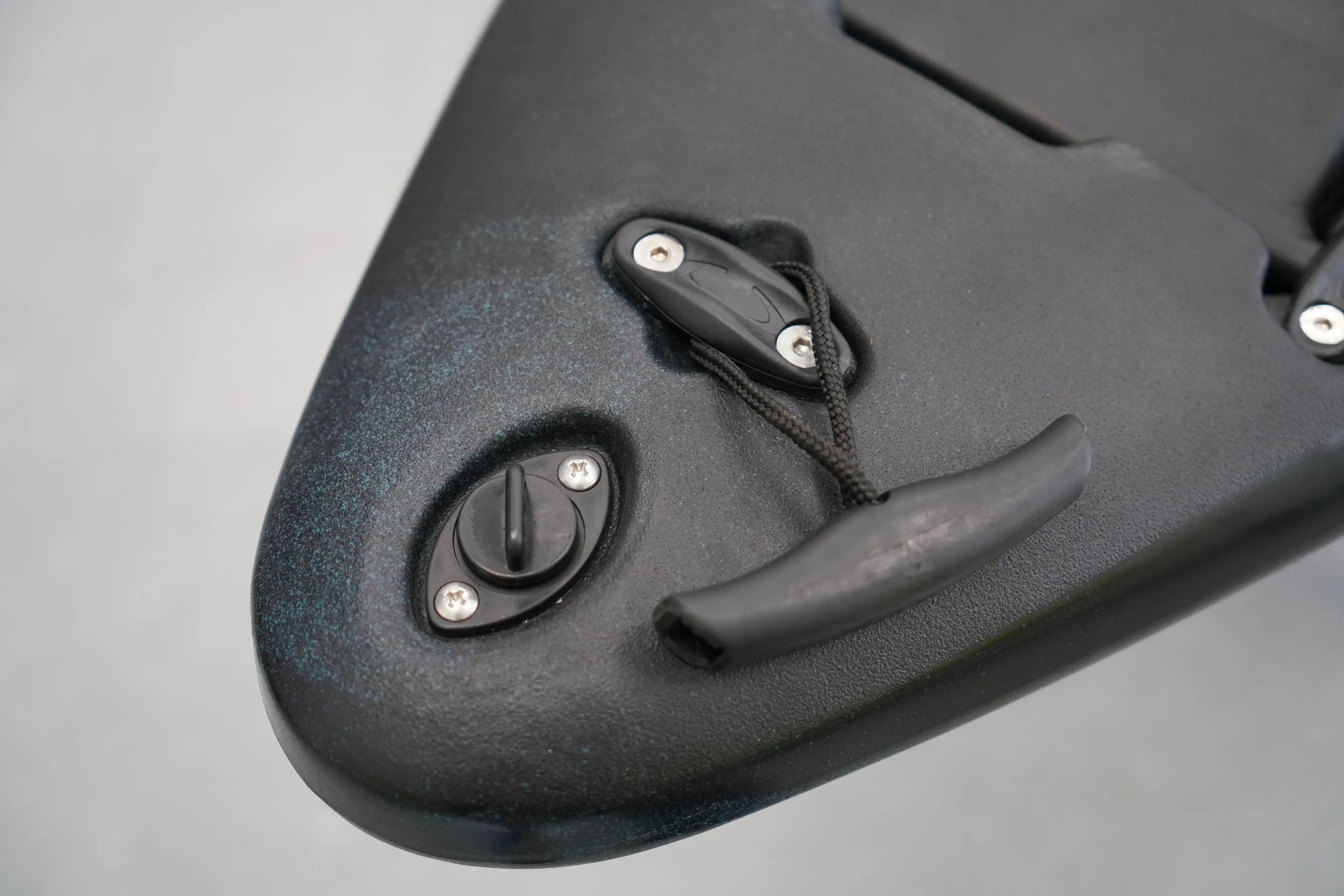 The 2024 Hoodoo Tempest 120P is crafted with stability and maneuverability in mind, with upgraded features that make our greatest kayak even better. Pack even more gear with the new weight capacity of 450 lbs.! With a sleek design that sits lower in the water than the preceding year's model, you will enjoy unparalleled stability without sacrificing speed and easy tracking. The front hatch storage is now more easily accessible. The side handles are now molded into the kayak for greater transporting ease and security. We are also still including the pedal drive system and the paddle.