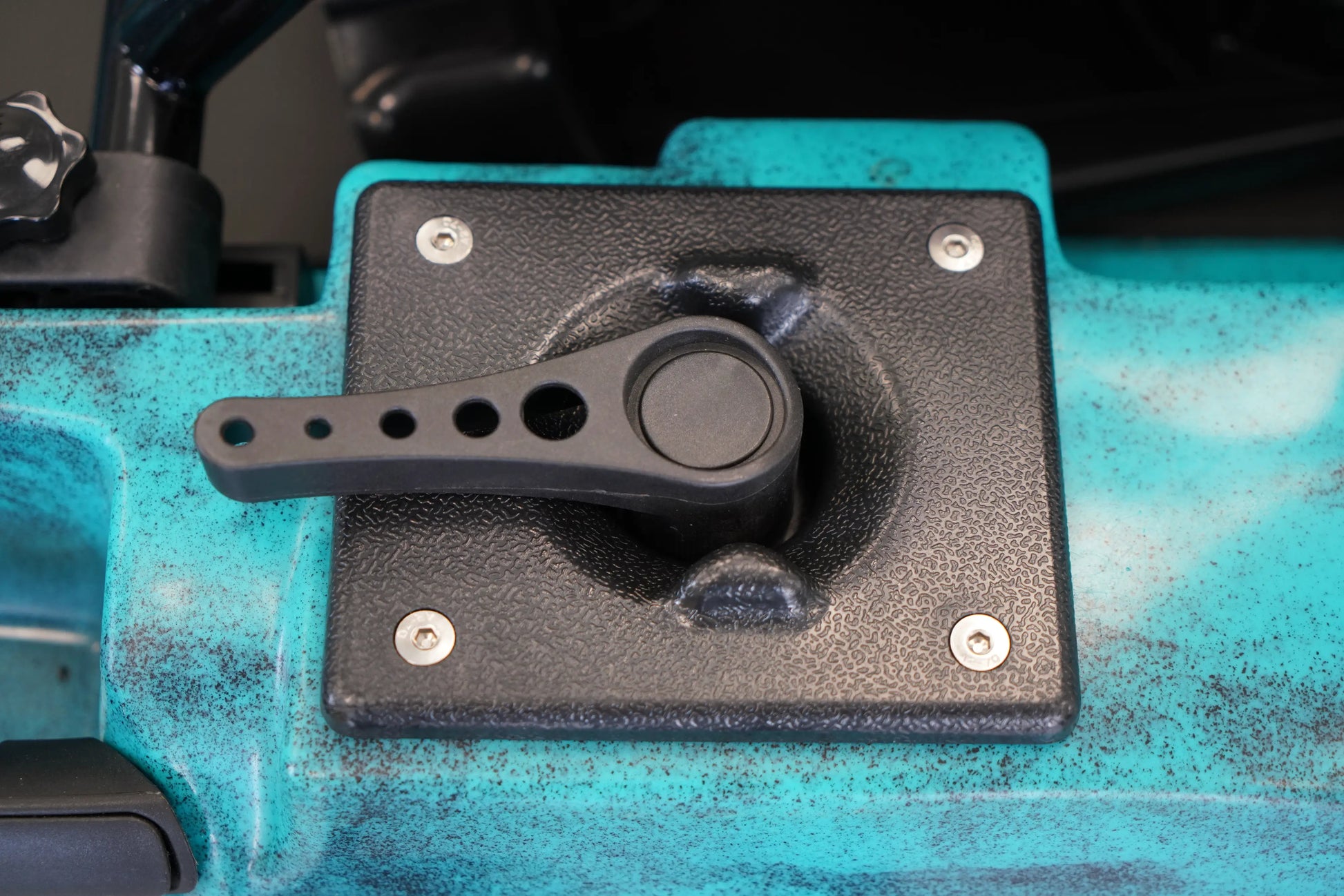 The Voyager 100P is a lightweight, compact pedal kayak built for stability and performance. At just 70 lbs, it’s easy to load and transport. Its 10-foot length and wide hull provide a stable platform that even allows standing while fishing. The pedal drive with instant reverse makes it quick, nimble, and perfect for reaching fishing spots larger kayaks can’t access.